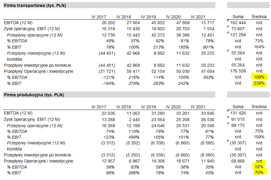 Możemy przeanalizować sprawozdanie finansowe. Generalnie, dla pierwszej grupy EBITDA będzie bardziej zbliżone do EBIT niż dla drugiej (zaznaczone na żółto poniżej).